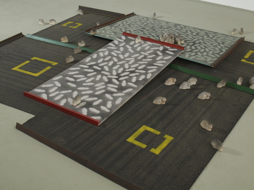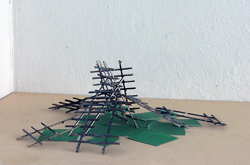 Als Ergebnis dieser Auseinandersetzung entstand so eine Anhäufung von ähnlichen aber dennoch individuellen Objekten, die zunächst an Bekanntes aus der Alltagswelt denken lassen und dabei doch den schönen Schein, den sie aufbauen, zerstören. In ihrer scheinbar zufälligen und beiläufigen Anordnung erwecken sie einen Eindruck von vertrautem Befremden, von unbehaglichem Schönem und dem vergeblichen Bemühen, sich einzurichten.